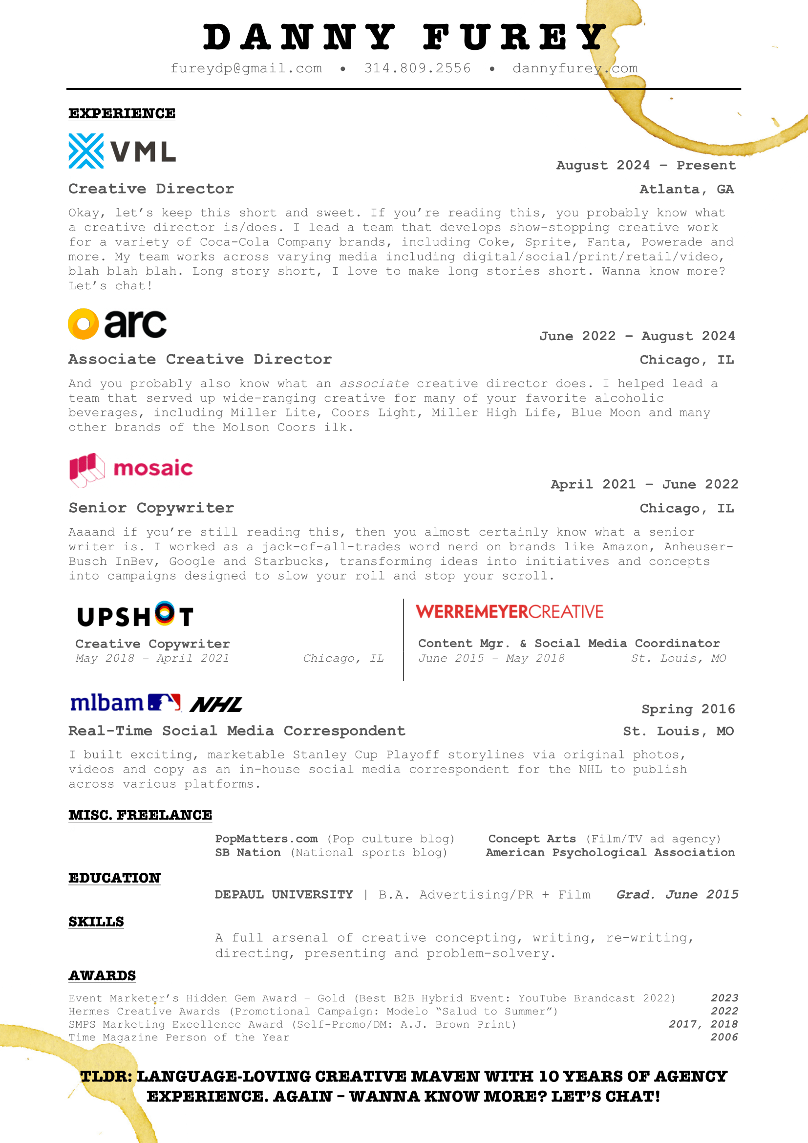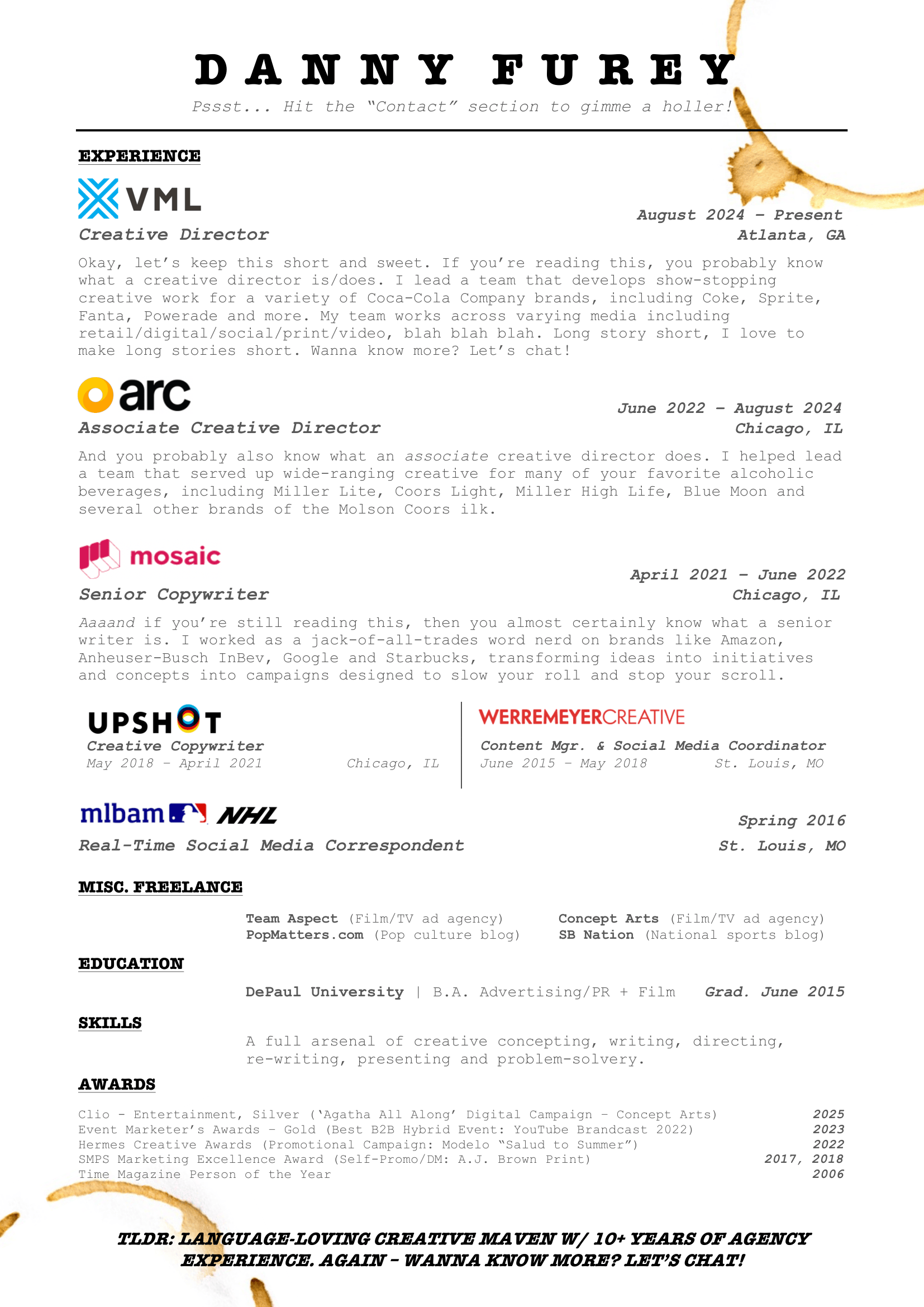 DANNY FUREY'S CREATIVE PORTFOLIO